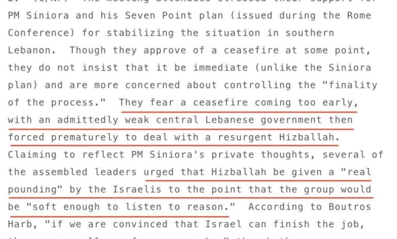 حكومة لبنان في ٢٠٠٦… دعمت حرب إسرائيل على لبنان