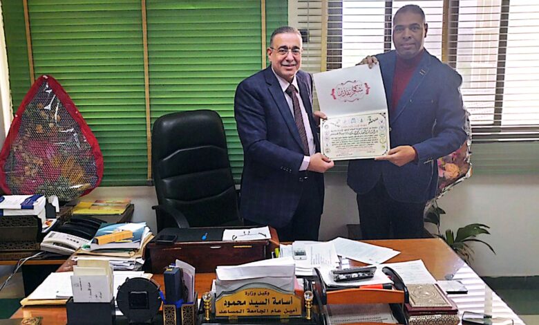 تكريم المنظمة المصرية الدولية لحقوق الإنسان والتنمية لامين عام الجامعة أسيوط المساعد
